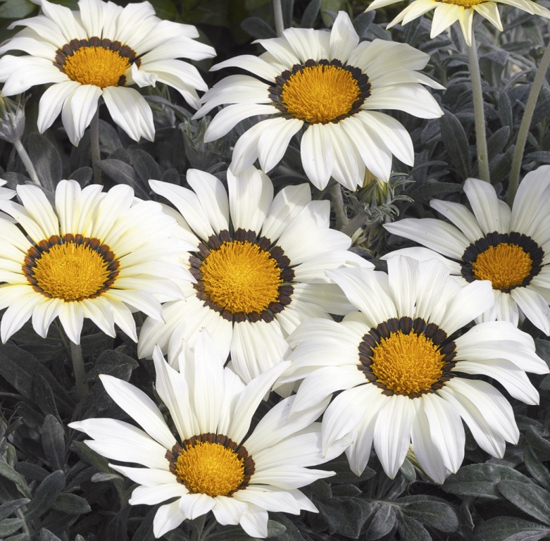 Растения с необычной серебристой окраской листьев.Цветы крупные, яркие, насыщенных окрасок, диаметром 6-8 см.  Серия - раннецветущая, выравненная по габитусу.