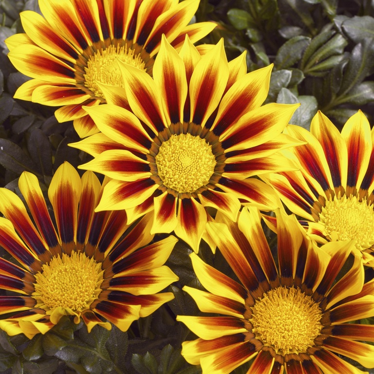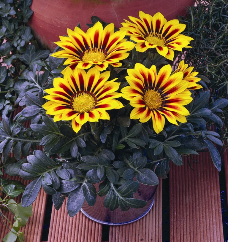 У гацаний сортосерии "Kiss" крупные, до 10см, цветки на компактном плотном кустике. У цветов этого сорта более короткая цветоножка, они "сидят" прямо над листьями. Благодаря этому тяжелые большие цветы меньше повреждаются ветром.
