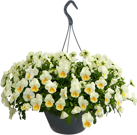 Новинка виолы для подвесных кашпо и корзин. Куст имеет шаровидную форму, растение не чувствительно к длине светового дня. Длительное и интенсивное цветение.