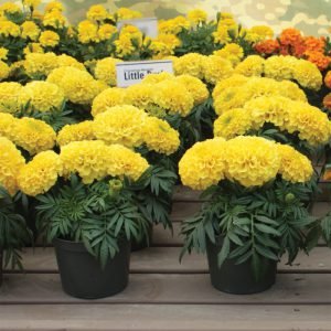 Самые компактные генетически карликовые бархатцы. Аккуратные, однородные растения с полностью махровыми плотными соцветиями. Листва темно-зеленая, цветоножки крепкие. Идеальны для выращивания в кашпо и как бордюрное растение.